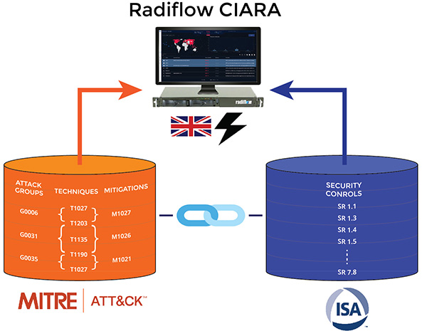 CIARA incorporates an algorithm created by Radiflow’s research team for cross-referencing between the threat landscape (specific attacker groups, attack techniques and corresponding mitigations) unique to each network sector and region, with the IEC 62443 standard.