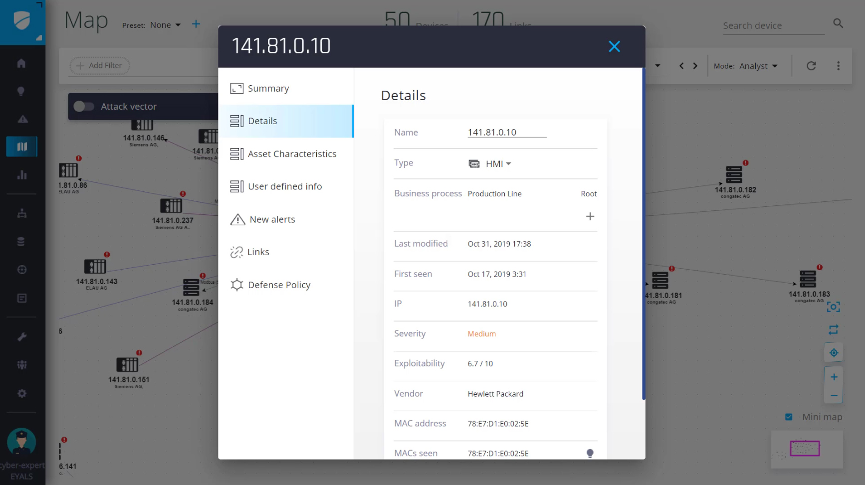 Upon activation, iSID learns the network, including all assets, connections and protocols. The result is a detailed network topology visualization model, with drill-down to each assets full details.