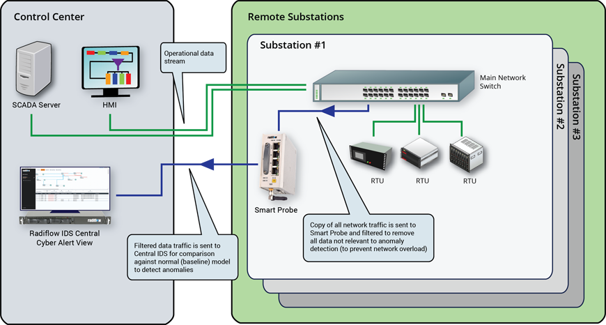 The targets within the substation are often the devices that regulate its operation, including Remote Terminal Units (RTU) and Intelligent Electronic Systems (IED), which control the substation operation coordinated with the Distribution Management System (DMS). Cyber defense solutions are deployed on-site to maximize the protection of the substation itself.