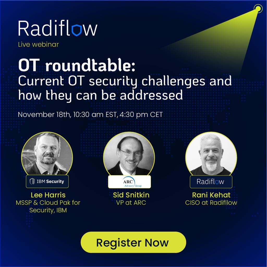 Join us for a roundtable panel where experts from ARC, IBM and Radiflow delve into the current state of OT cybersecurity best practices, where we’ll discuss: